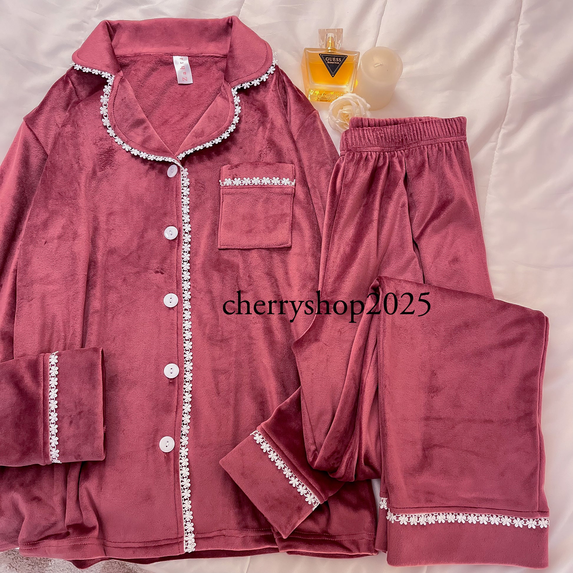 بيجامة موف بتطعيم ورود