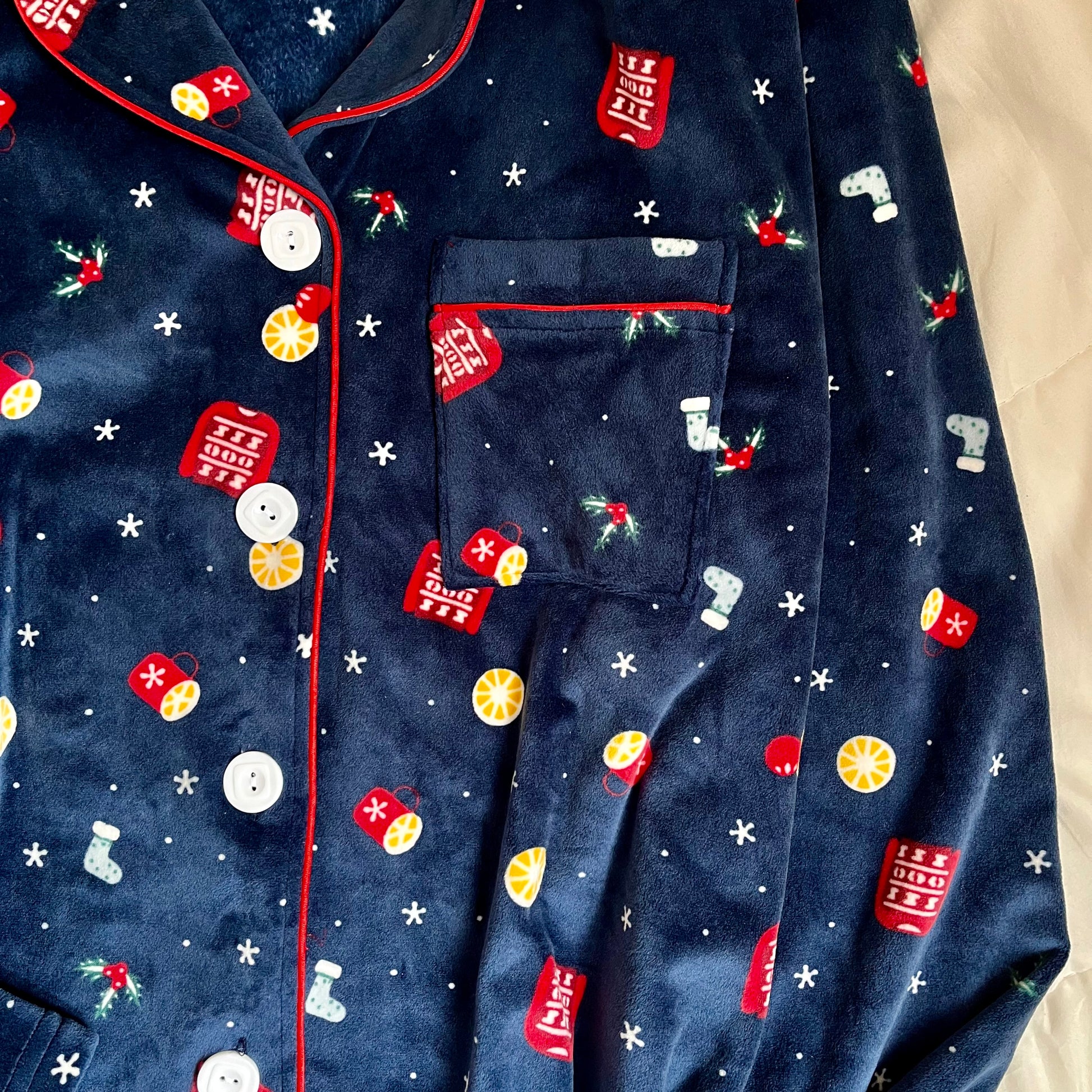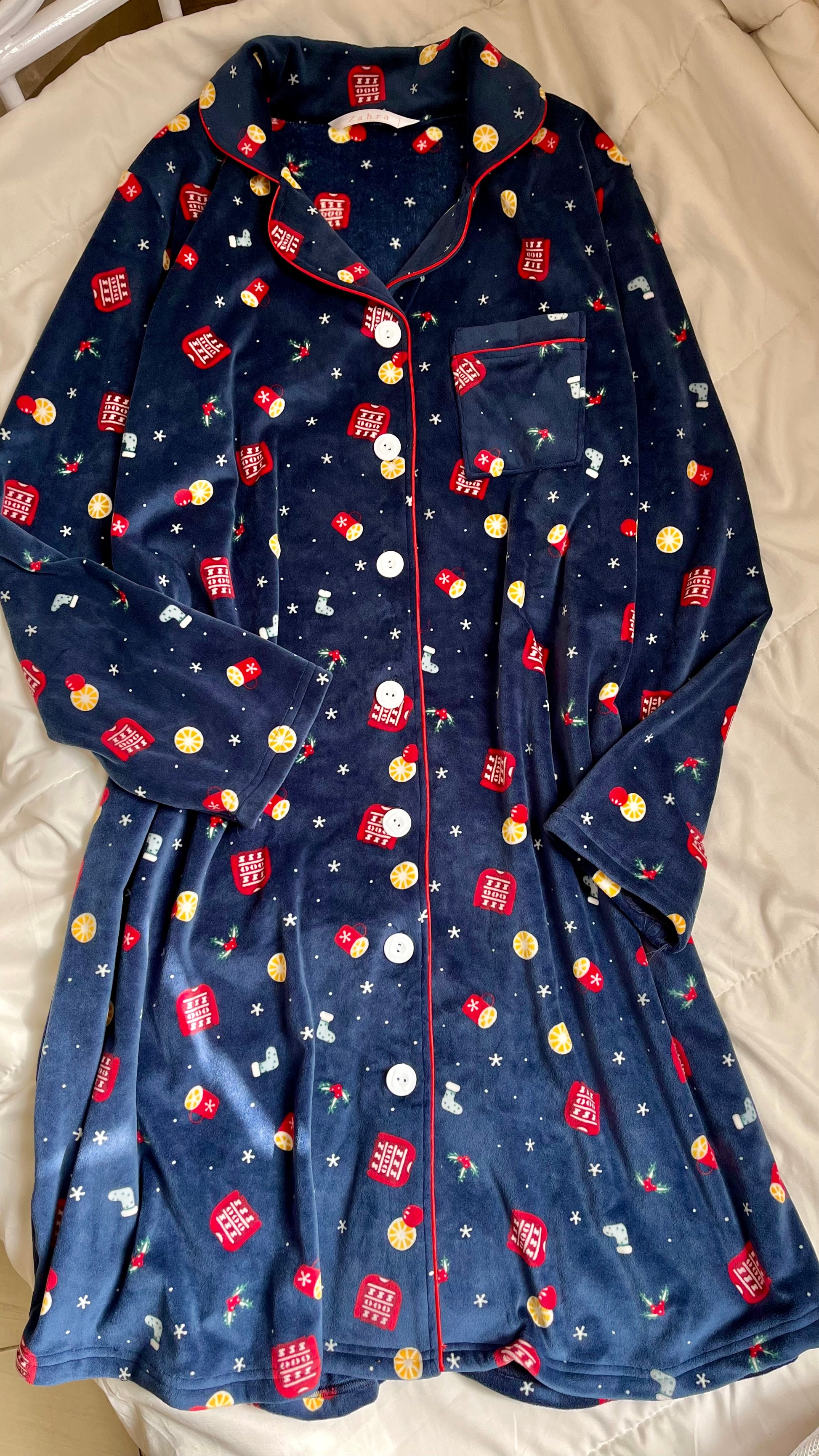 نايت شيرت قطيفة كحلى مطبوع