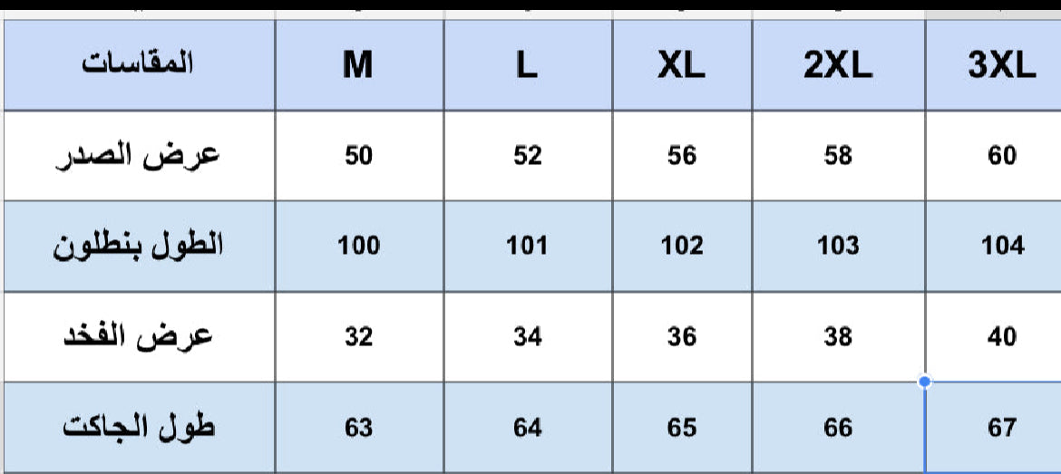 يوجد جدول مقاسات اخر صورة